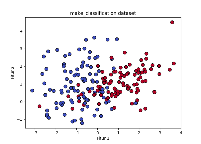 1. make_classification: membuat dataset acak dimensi N